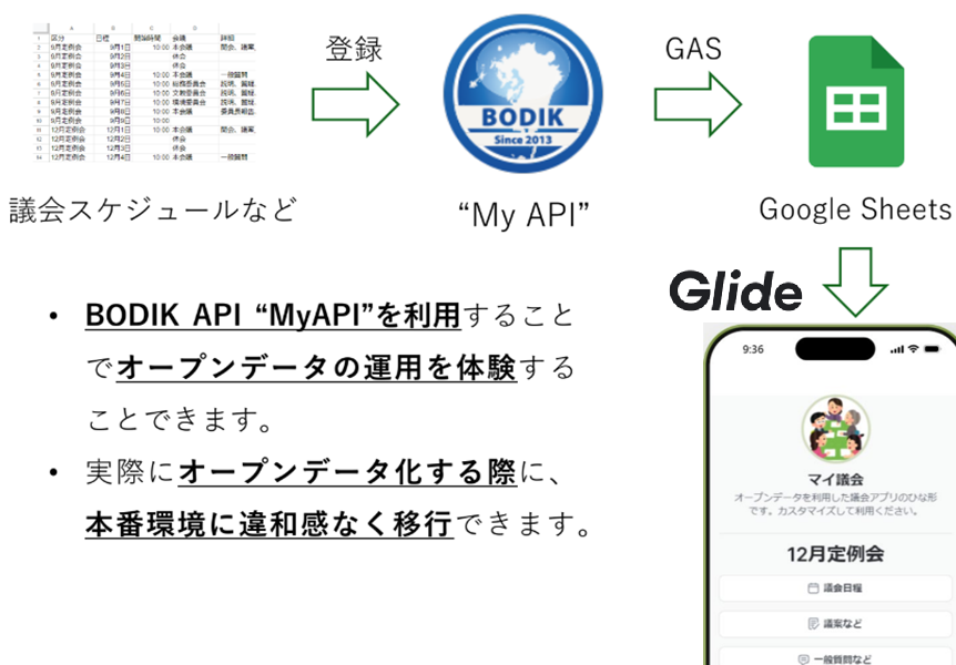 <BODIKより>この作品は、自治体標準データセット以外でもAPI化できる MY API を使っています。