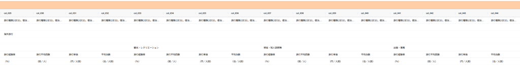 - 最初の部分がブランクになっているが、おそらく「旅行の種類」全体の値だと思われる。